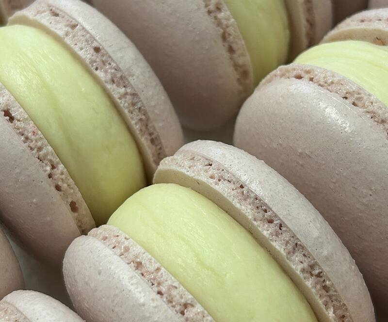 Ganache al cioccolato bianco aromatizzata al tè sakura e cuore di lampone